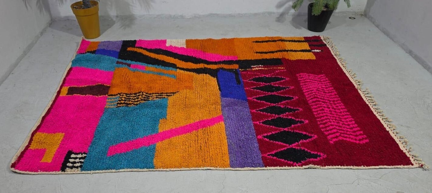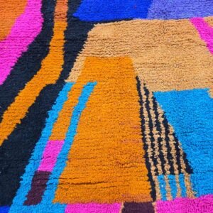 Boujad rug is an authentic Moroccan rug, rich in creativity and colors, making it eye-catching. The uniqueness of its design makes these rugs rare and distinctive pieces for interior decor and personal use. The lively colors set them apart from other Berber rugs.